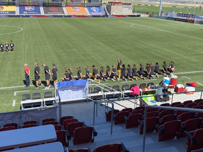 Ha fatto molto discutere negli ultimi giorno la foto di una calciatrice americana che ha deciso di non inginocchiarsi durante una partita di calcio. La partita era North Carolina vs Portland Thorns, tutte le atlete indossavano la maglia “black lives matter” ed erano inginocchiate contro il razzismo, tutte tranne una. La ragazza, Sam Murphy , è del 97 e sul suo account Instagram si dichiara patriota.